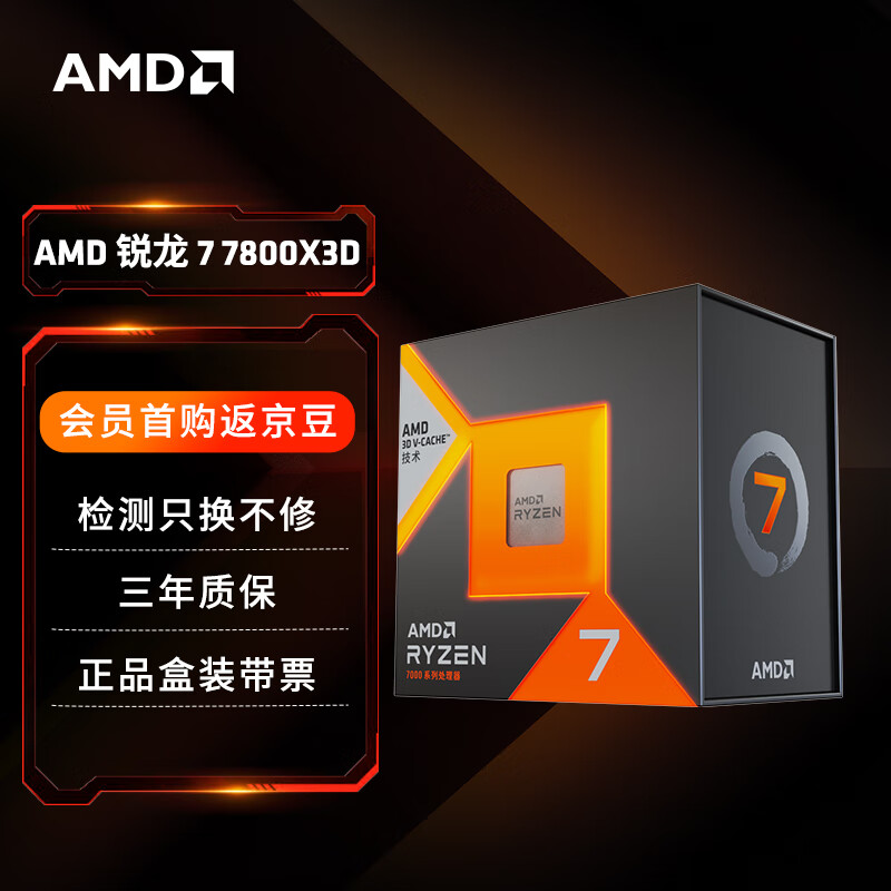 AMD锐龙7 7800X3D游戏处理器8核16线程104MB游戏缓存 加速频率至高5.0GHz盒装CPU 畅玩无畏契约/CSGO价格:3199.00元!