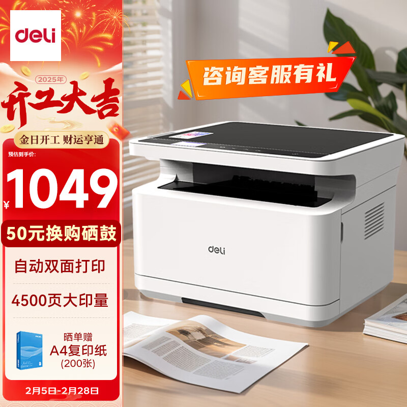 得力(deli)多功能三合一黑白激光打印机复印机扫描机一体机 手机连接家庭打印 办公家用大容量激光打印机 【M2000DW】双面高速|大容量|附原装硒鼓价格:1049.00元!