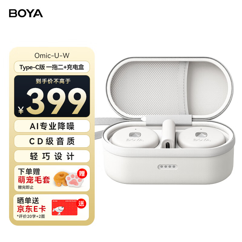 BOYA 博雅Omic纽扣麦克风无线领夹麦一拖二胸麦 手机户外直播vlog短视频降噪无线收音麦 Type-C版价格:410.59元!