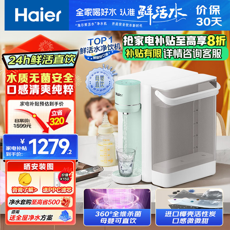 海尔(Haier)新雨台式净饮机鲜活水RO反渗透即热净水机一体机免安装1秒速热净水器HCF75-2LX价格:1599.00元!