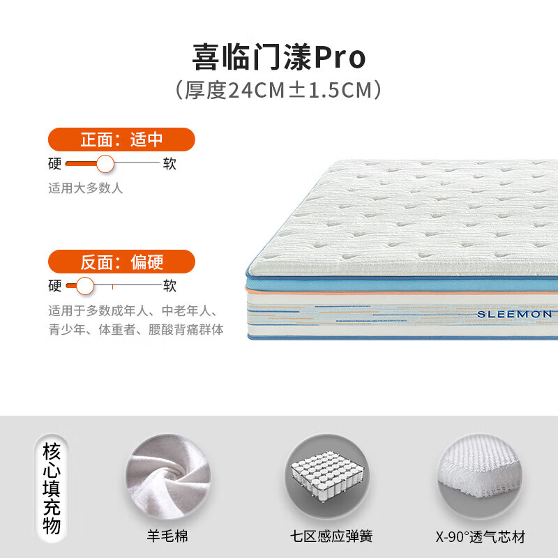 喜临门羊毛棉凝胶记忆棉床垫 7区独袋弹簧透气芯材床垫 漾pro1.5x2米价格:2799.00元!