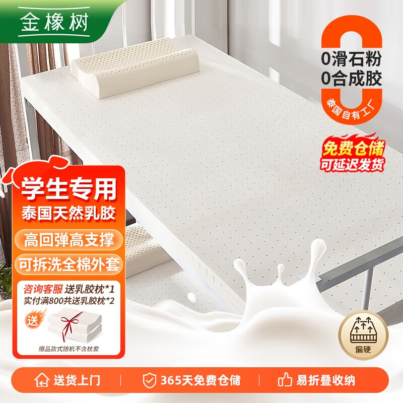 金橡树泰国进口天然乳胶床垫加厚宿舍学生单人床垫100*200*10cm 云梦95D价格:1030.00元!