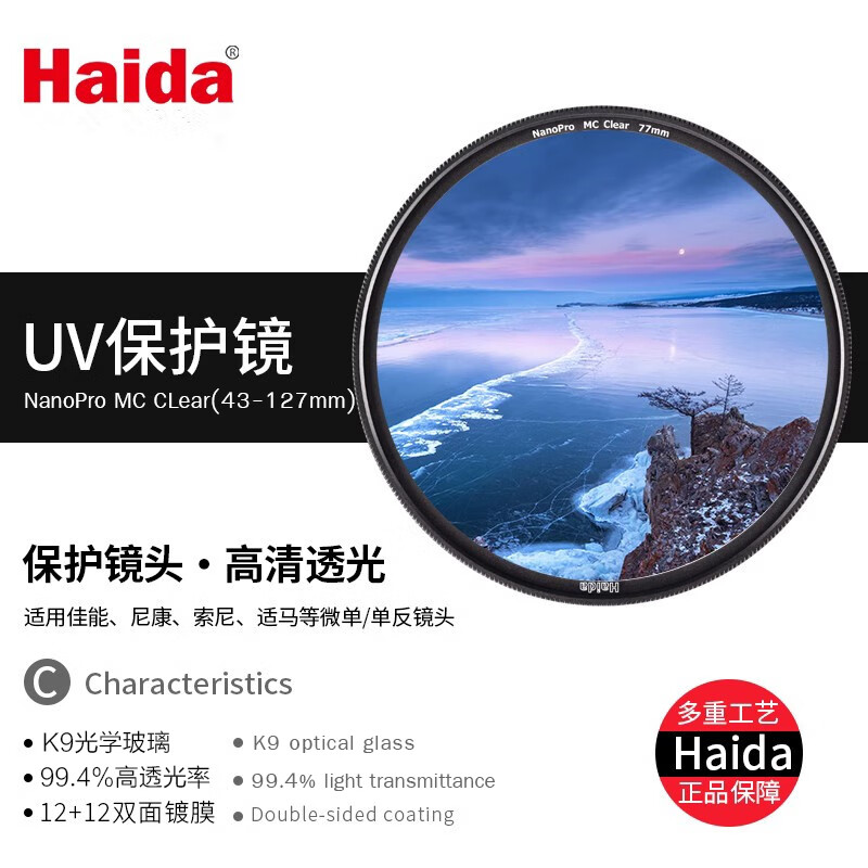 Haida海大UV镜 49mm滤镜NanoPro纳米双面多层镀膜保护镜防水防污适用于佳能索尼等微单单反相机镜头价格:175.00元!
