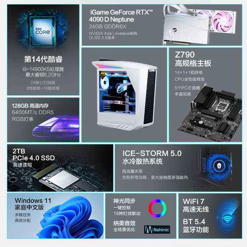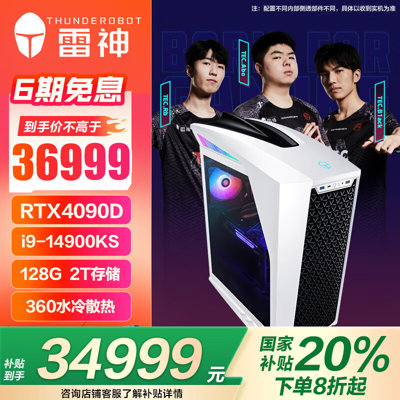雷神(ThundeRobot)黑武士·Shark 游戏设计台式电脑电竞主机(i9-14900KS 128GD5 RTX4090D 2T+4T Z790 WIFI7)价格:36999.00元!