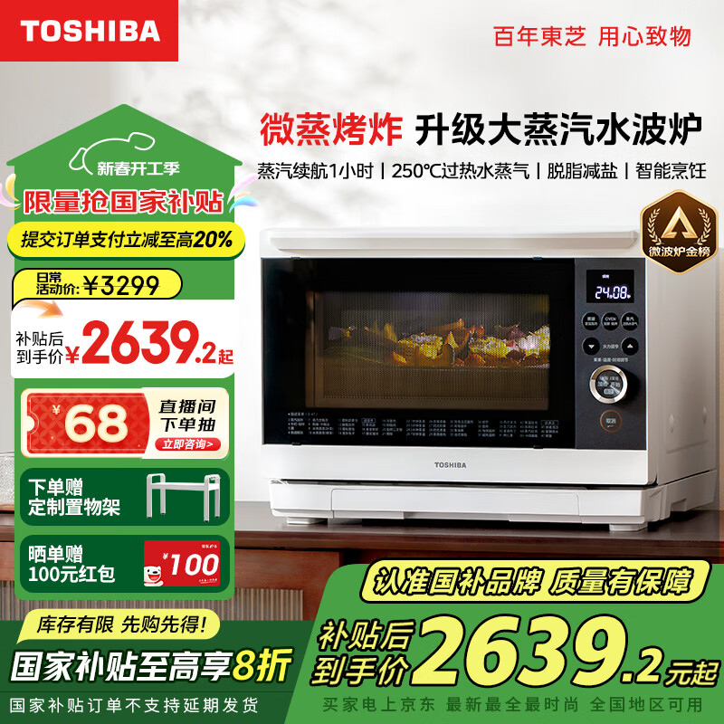 东芝(TOSHIBA)微蒸烤炸一体机 白珍珠水波炉经典款 微波炉蒸烤箱一体机 空气炸 蒸箱 白色26L XD95CNW 台嵌两用价格:3299.00元!