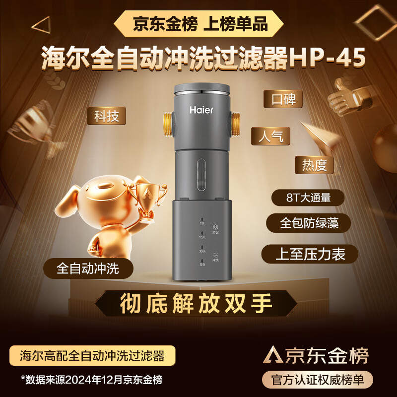 海尔(Haier)前置过滤器前十名8T大通量家用净水器40微米全自动反冲洗无需手动实时水压监测全屋净水机HP-45价格:699.00元!