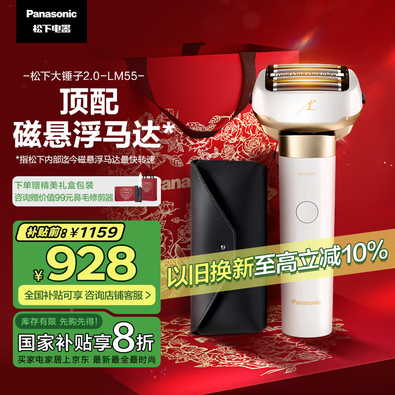 松下(Panasonic)全新大锤子2.0剃须刀电动往复式男士刮胡刀进口五刀头Type-c 情人节礼物送男友送男士礼盒LM55白价格:1159.00元!