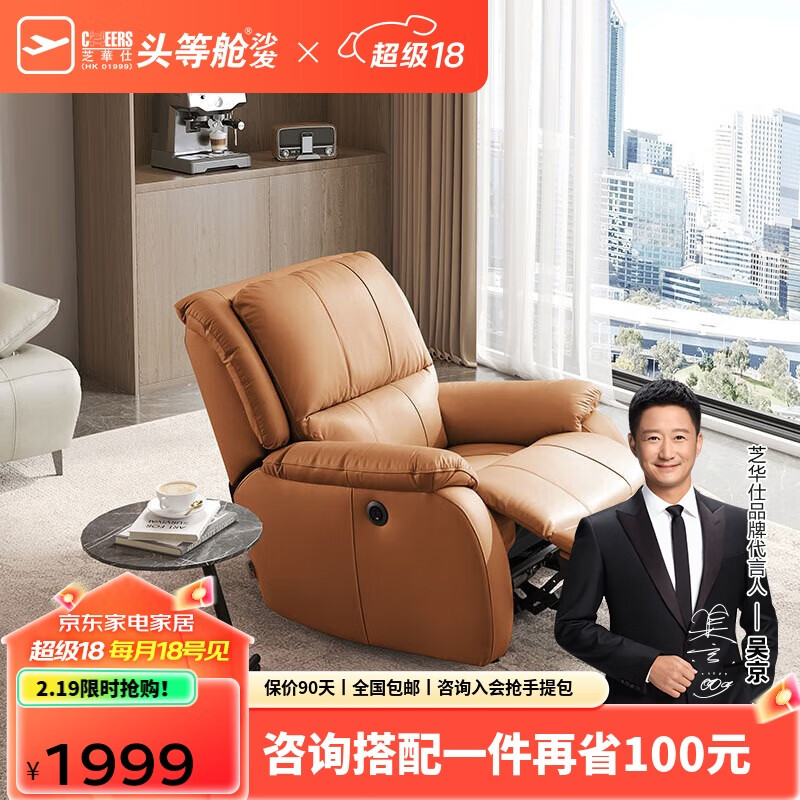 芝华仕(CHEERS)头等舱智能椅皮单椅电动躺摇懒人休闲椅午休单人沙发芝华士K621橙价格:1999.00元!