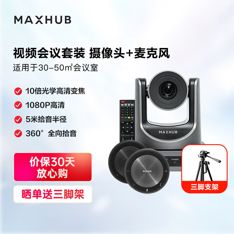 MAXHUB视频会议设备全套装系统10倍光学变焦高清云台摄像头+全向麦克风5米拾音*2会议室解决方案20-40㎡价格:2798.00元!
