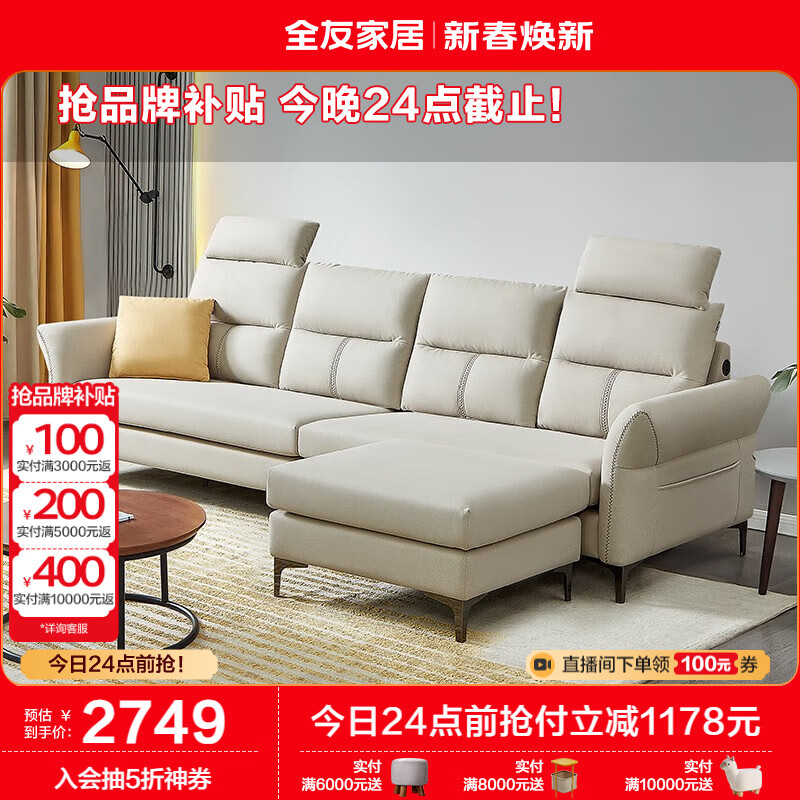 全友家居 现代简约usb充电功能科技布沙发客厅家具102679价格:3927.14元!