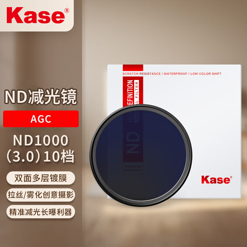 卡色(Kase)ND减光镜 ND1000(减10档) 中灰密度镜水流瀑布拉丝如絮车流轨迹慢门长时间曝光 49mm AGC款价格:145.00元!