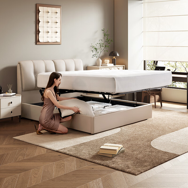 5、这款芝华士真皮床外观大方,做工精细,床底有储藏功能!快递及时,安装师傅花了很大力气才安装完,非常辛苦。花了一元参与了活动,还附赠了抱枕,手提包,枕头,非常不错的一次购物体验!