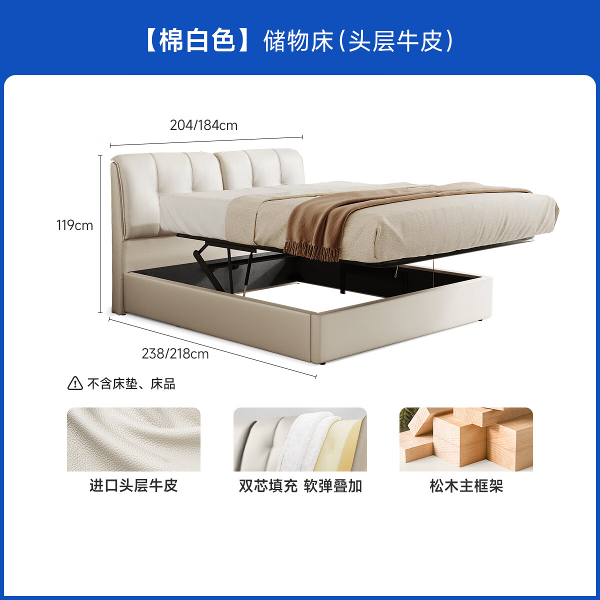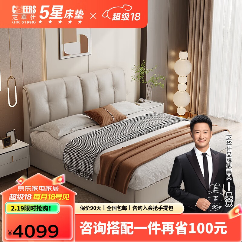 芝华仕(CHEERS)五星皮床主卧大床双人床储物真皮床简约软包吐司床芝华士C265白2m价格:4099.00元!