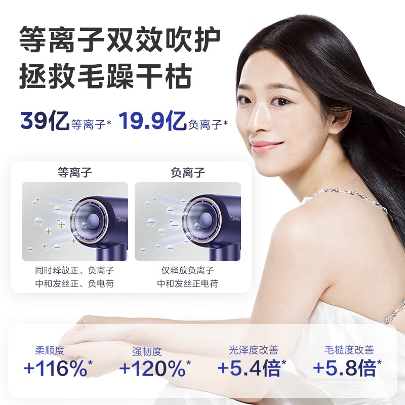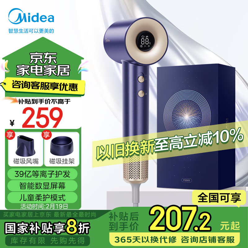 美的(Midea)高速电吹风 39亿等离子护发吹风筒 儿童可用 风温可视FG505礼盒装-智能数显屏 节日礼物推荐价格:259.00元!