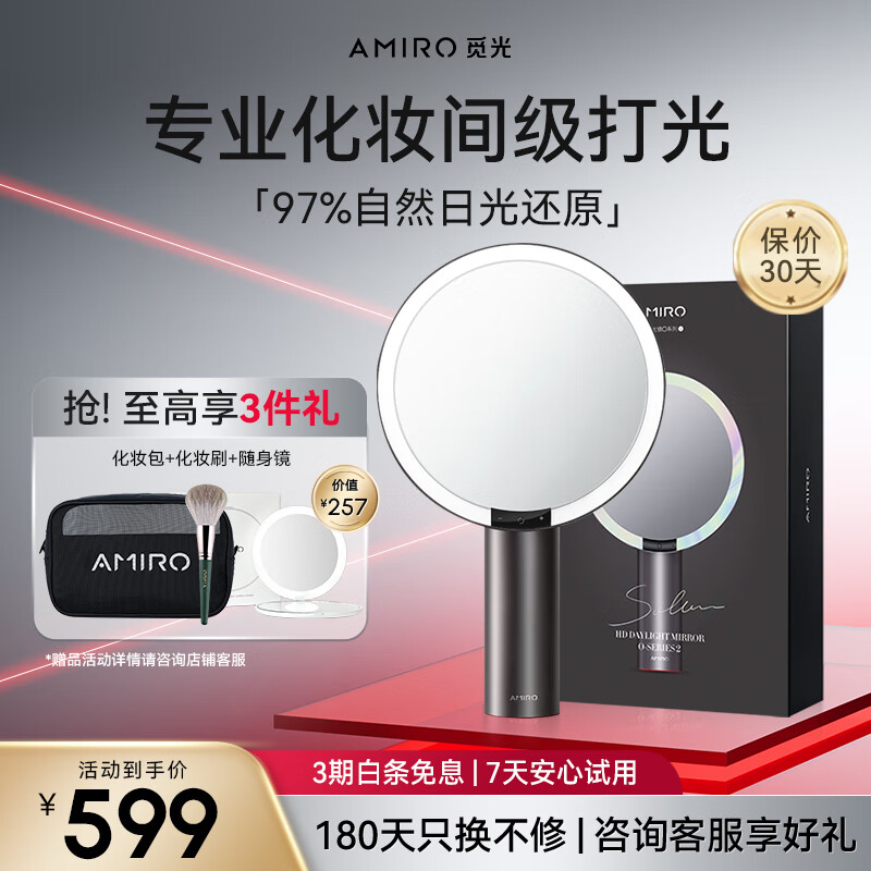AMIRO觅光化妆镜带灯桌面led智能梳妆台式高清补光美妆镜子O2黑礼盒 生日结婚礼物送女生价格:699.00元!