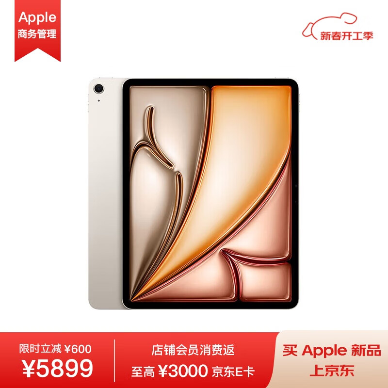 Apple iPad Air 13 英寸 M2芯片 2024年新款平板电脑128GB WLAN版/MV293CH/A 星光色*企业专享价格:6499.00元!