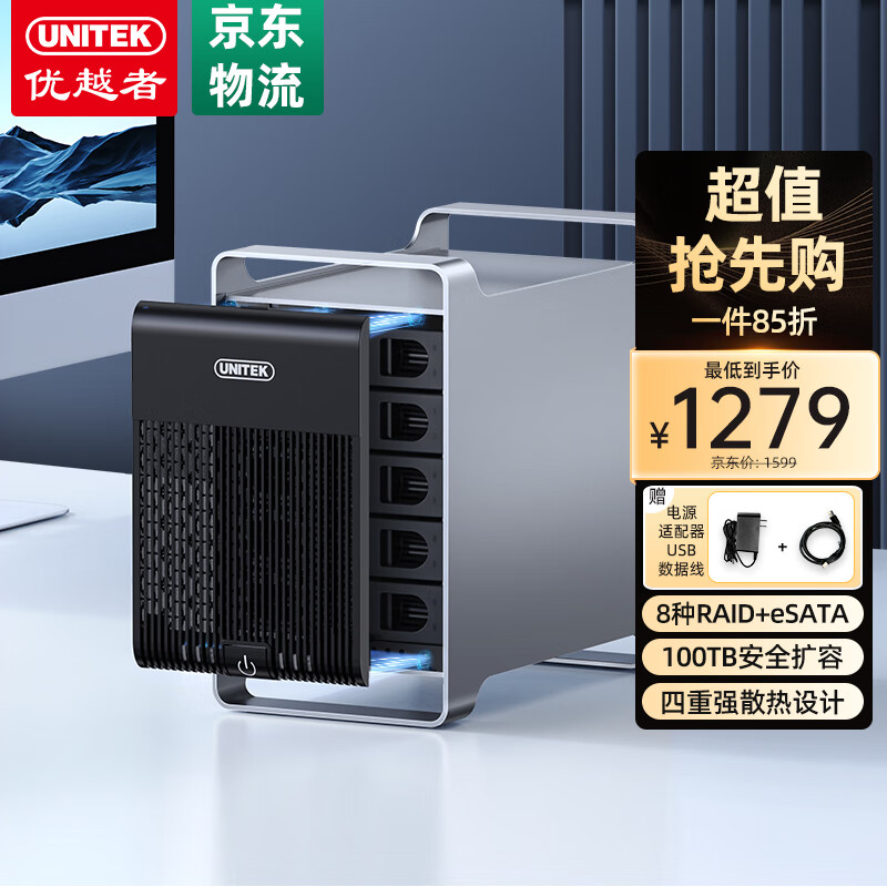 优越者(UNITEK)磁盘阵列柜五盘位带RAID硬盘柜 2.5/3.5英寸机械/SSD固态笔记本外接多盘位硬盘盒 S303A价格:1279.00元!